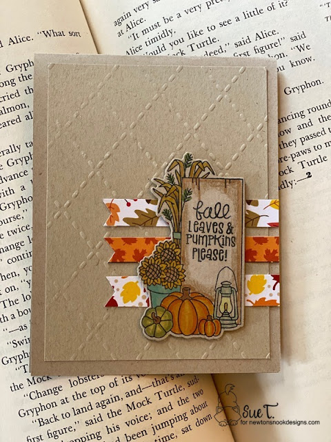 It's the time of year, where you will see me crafting with kraft, paper that is. Something about kraft paper just makes me think of fall and Thanksgiving. Today's card features "Signs of Fall", Autumn paper pack, and the "Argyll" stencil. all from Newton's Nook.